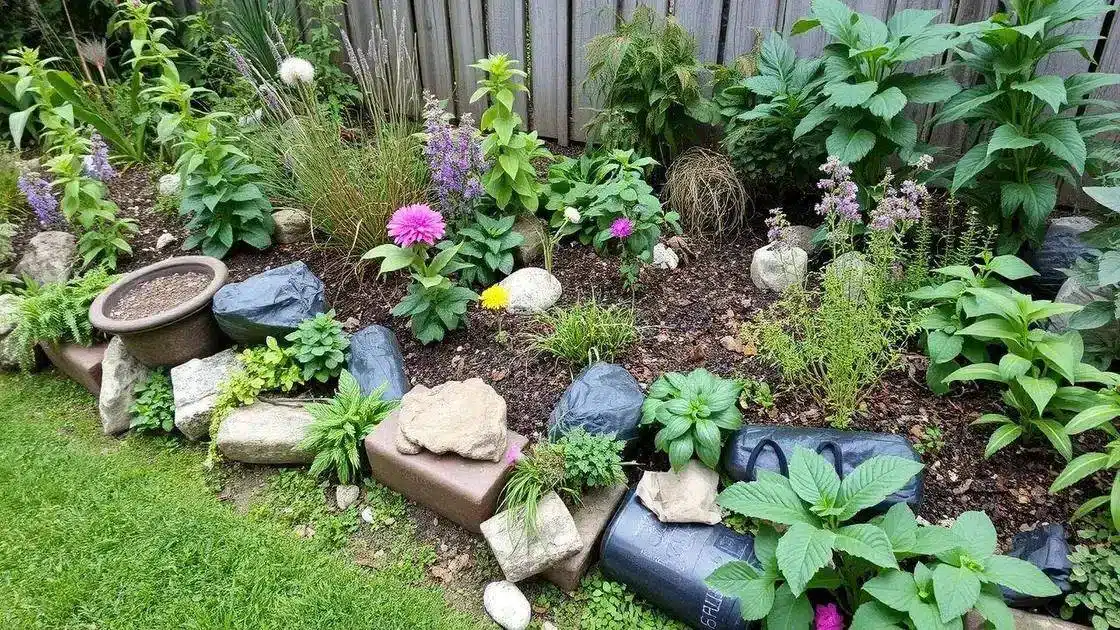 - Reaproveitamento de materiais: Usar objetos recicláveis para criar canteiros ou estruturas decorativas.